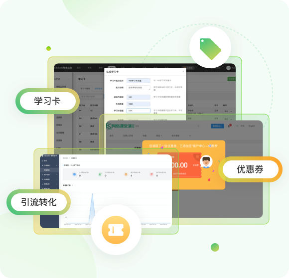 • 拼團、秒殺、兌換碼、學習卡、公開課,多樣化的營銷工具,幫助培訓機構實現全渠道引流及轉化。