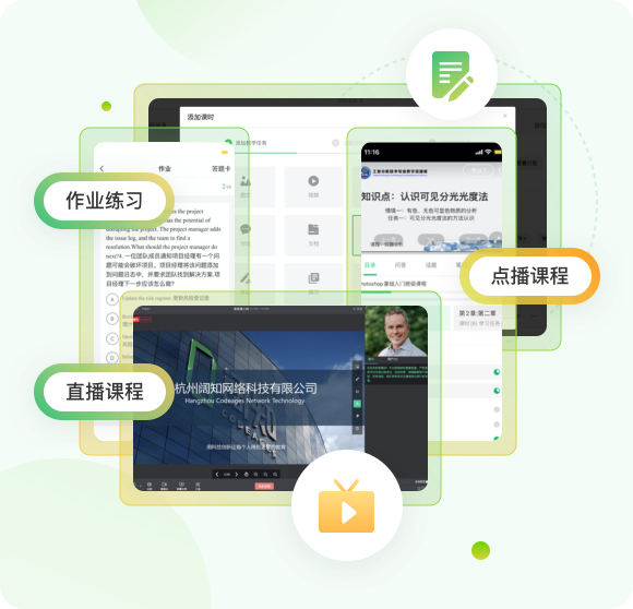 直播班課+錄播知識+考試題庫,打造學練測考一體的培訓平臺